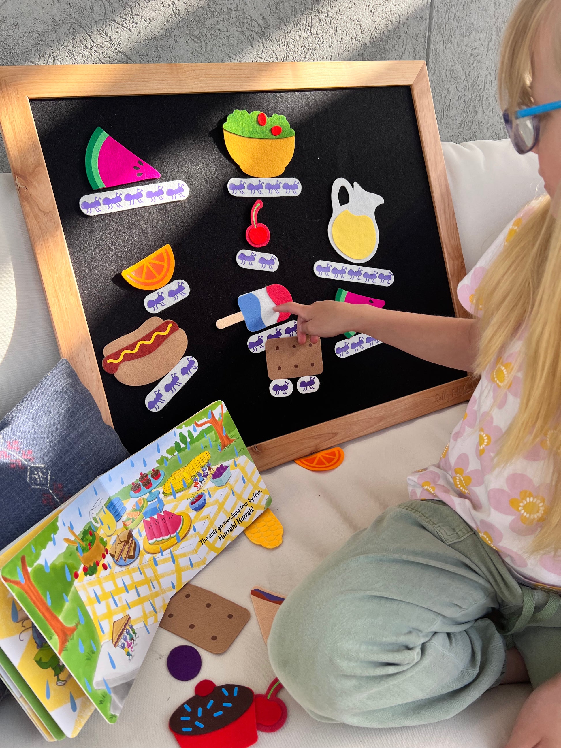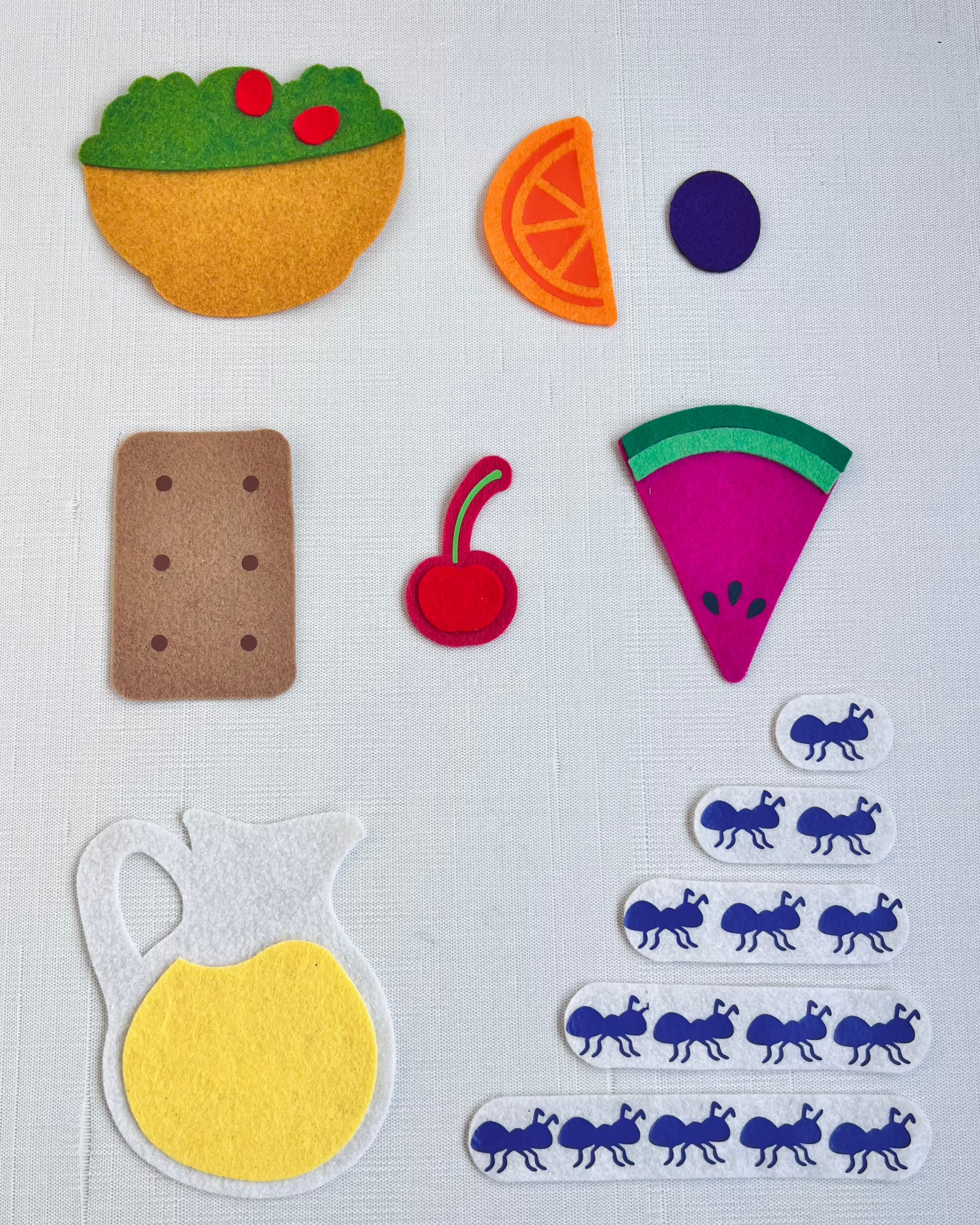 Designed to pair perfectly with The Ants Go Marching Book & Felt set, this bonus collection adds extra fun and storytelling depth. Count along with felt ants from one to five as they march toward a delightful picnic filled with colorful, kid-favorite snacks.