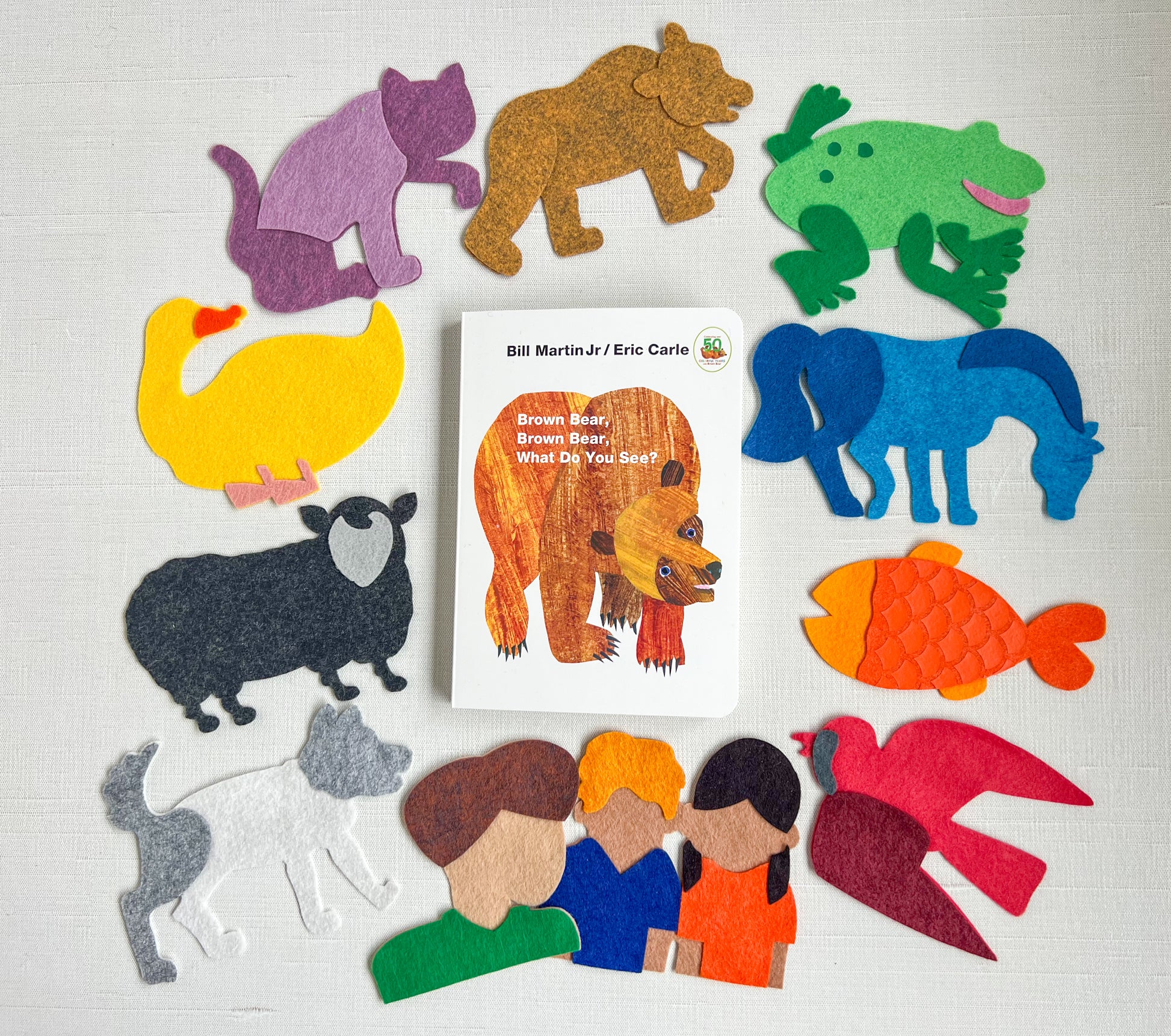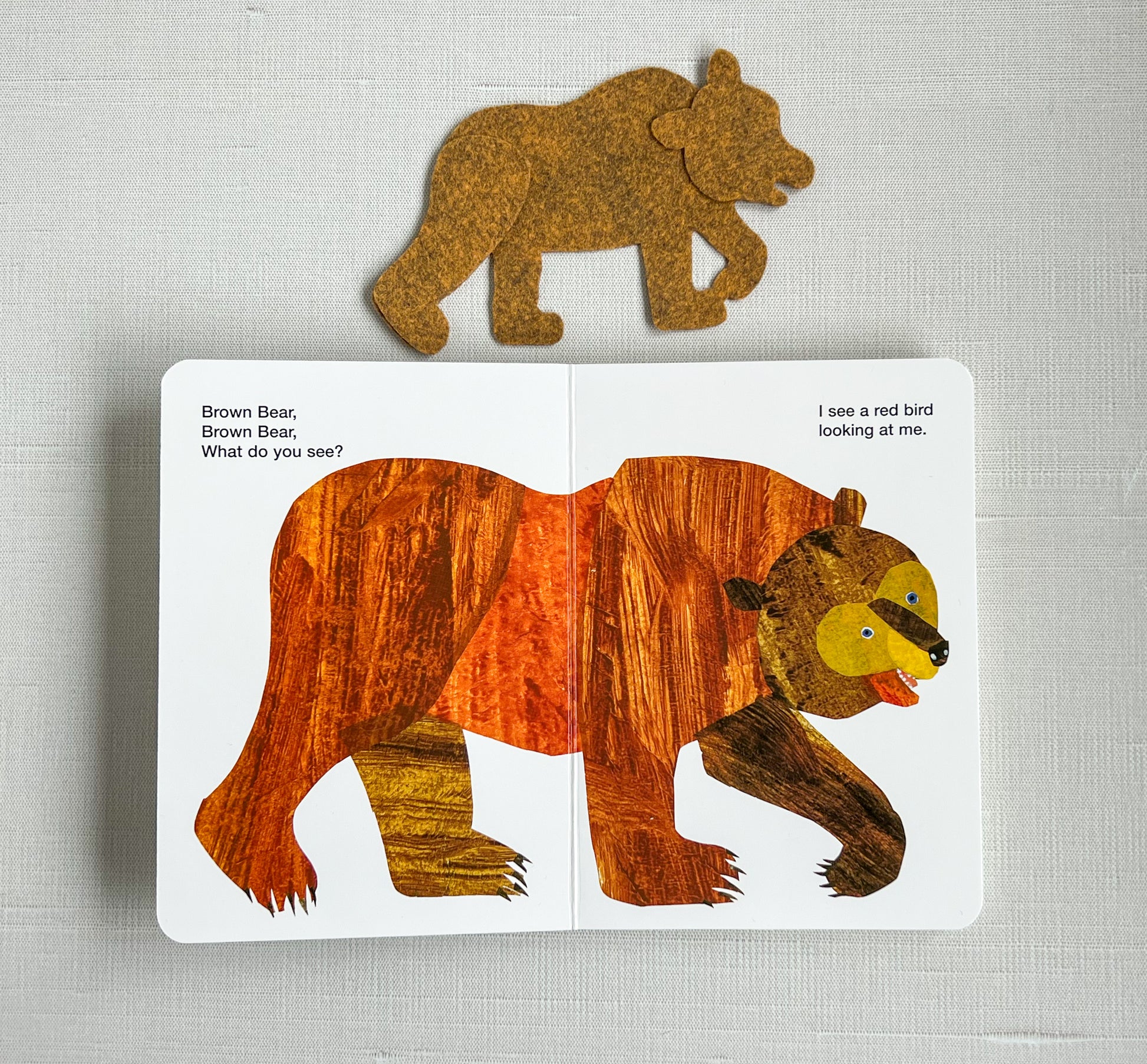 Turn every page into a hands-on discovery with this Book & Felt Set inspired by the timeless classic Brown Bear, Brown Bear, What Do You See? by Bill Martin Jr. and Eric Carle. With bold, colorful animals and rhythmic, predictable text, this set is a favorite for early learners—and now, they can hold the story in their hands!