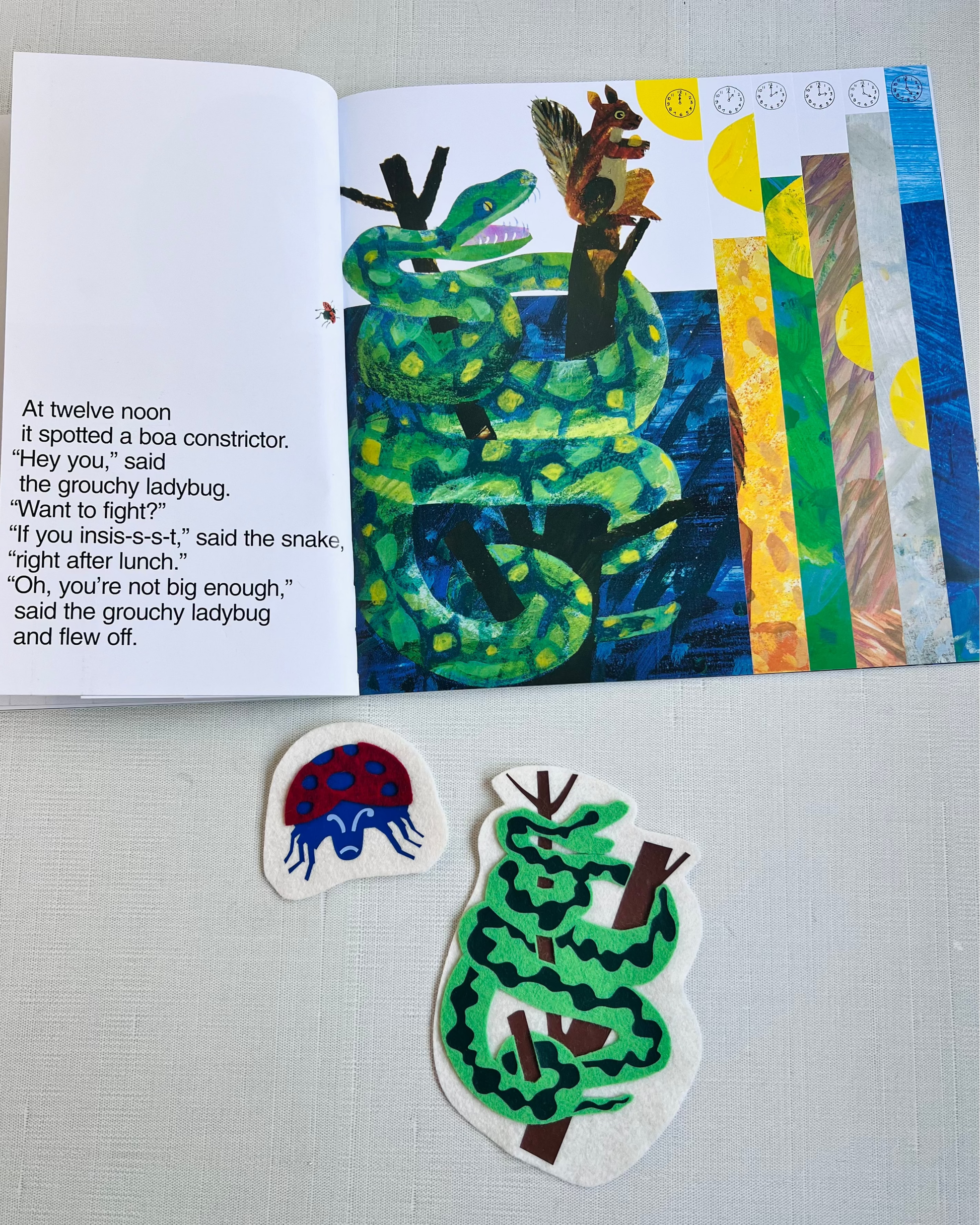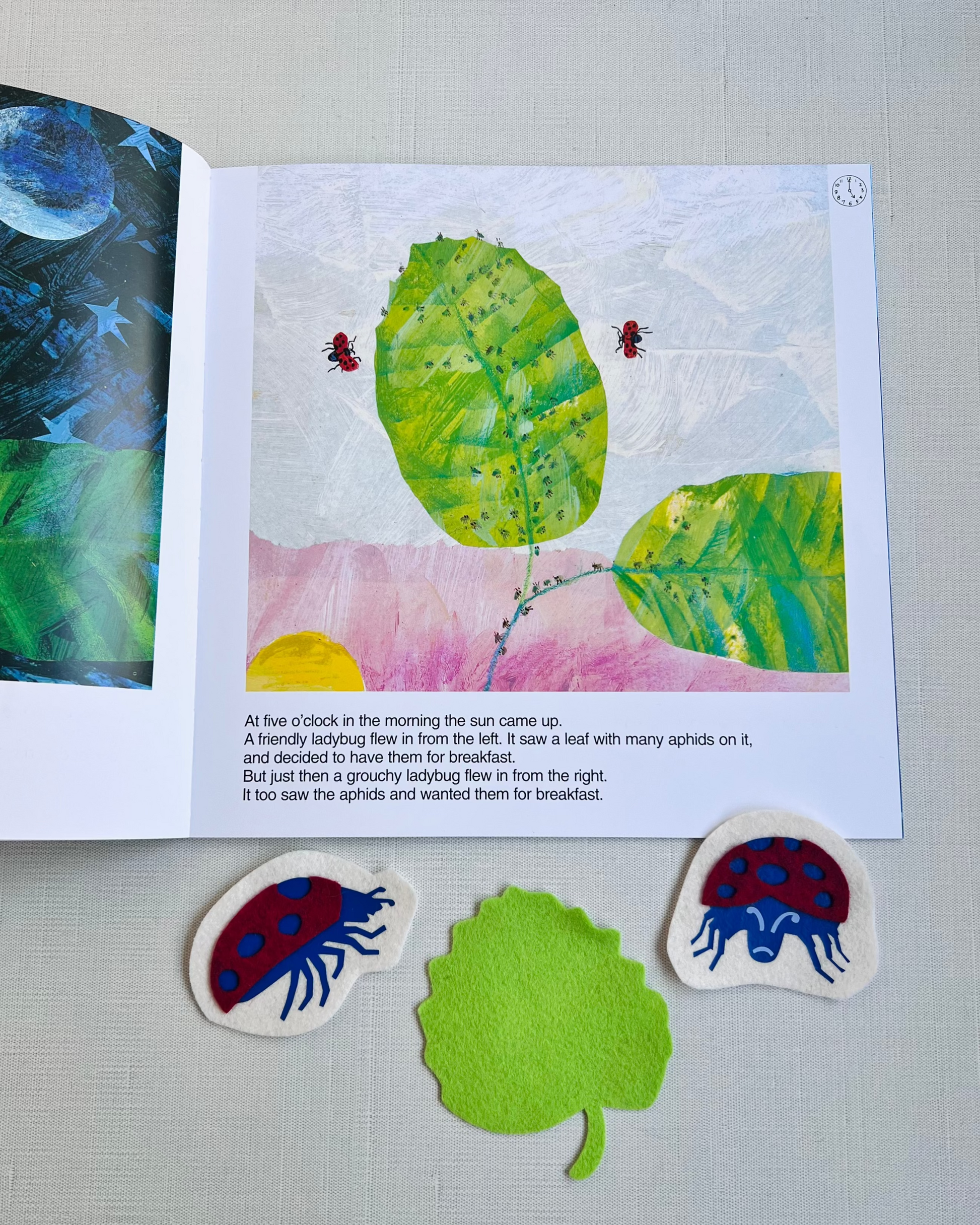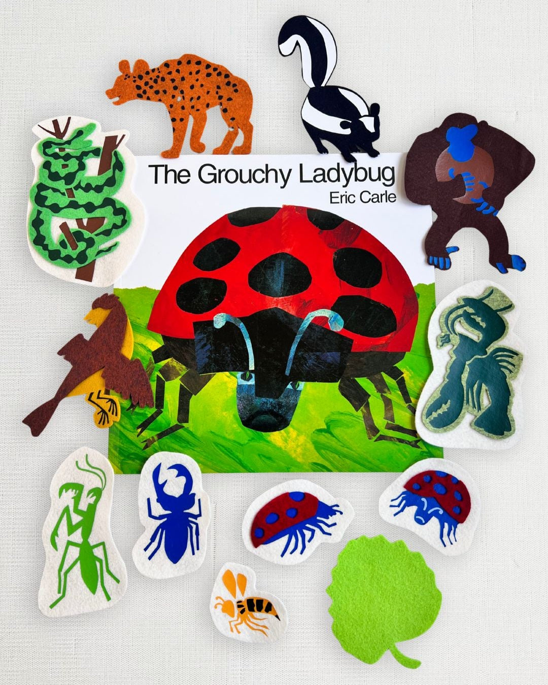 Teach kindness, patience, and sharing with this classic Eric Carle tale brought to life in felt! The Grouchy Ladybug follows a cranky bug who learns big lessons while meeting animals of all sizes.